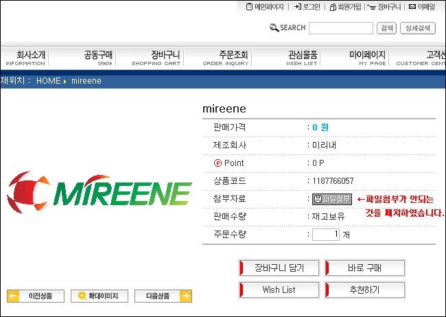 ¹Ì¸®³»¼¥¿¡¼­ Á¦Ç°º¸±â¿¡¼­ ÆÄÀÏ÷ºÎ°¡ ¾ÈµÇ¾ú´ø ºÎºÐÀ» ÆÐÄ¡ÇÏ¿´½À´Ï´Ù.