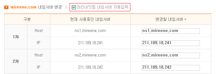 3. ³×ÀÓ¼¹ö º¯°æÆäÀÌÁö¿¡¼ »ó´Ü¿¡ ¹Ì¸®³» ³×ÀÓ¼¹ö ÀÚµ¿ÀÔ·ÂÀ» ¼±ÅÃÇØÁÖ¼¼¿ä. ³×ÀÓ¼¹ö°¡ ÀԷµǼÌÀ¸¸é ÇÏ´Ü¿¡ º¯°æÇϱ⠹öưÀ» Ŭ¸¯ÇØÁÖ¼¼¿ä.